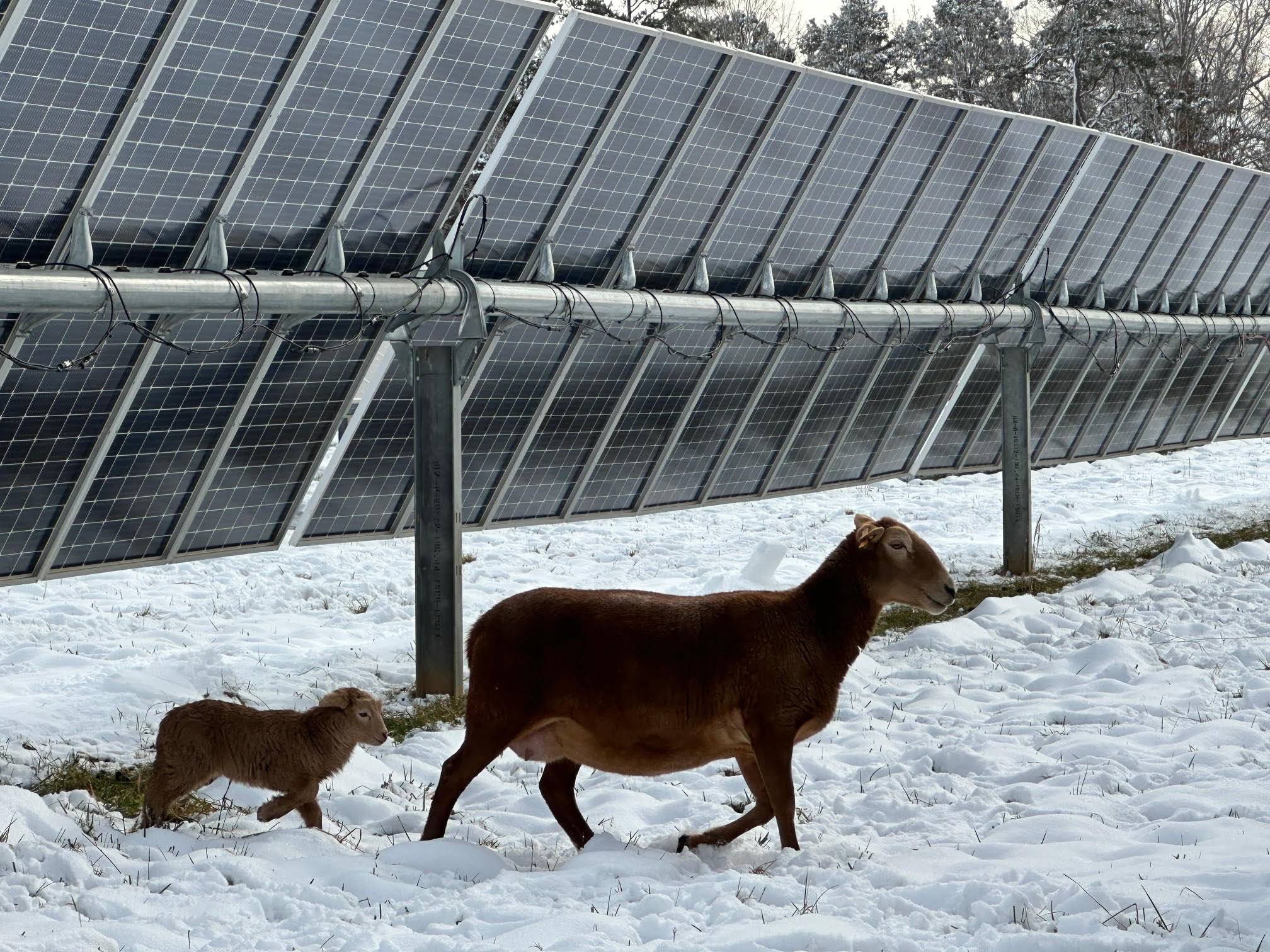 Winter 2025 Newsletter Welcome to the Winter Edition of the ASGA Quarterly Newsletter! We're glad you're here. This is the place where you can learn the latest happenings in the world of solar grazing and agrivoltaics. Grab a cup of coffee and read on to learn what ASGA and our partners are doing to help advance agriculture on solar fields. Photo of the Month As snow returns to Northeast solar sites, solar grazing persists. These sheep make use of the stockpiled forage still accessible...